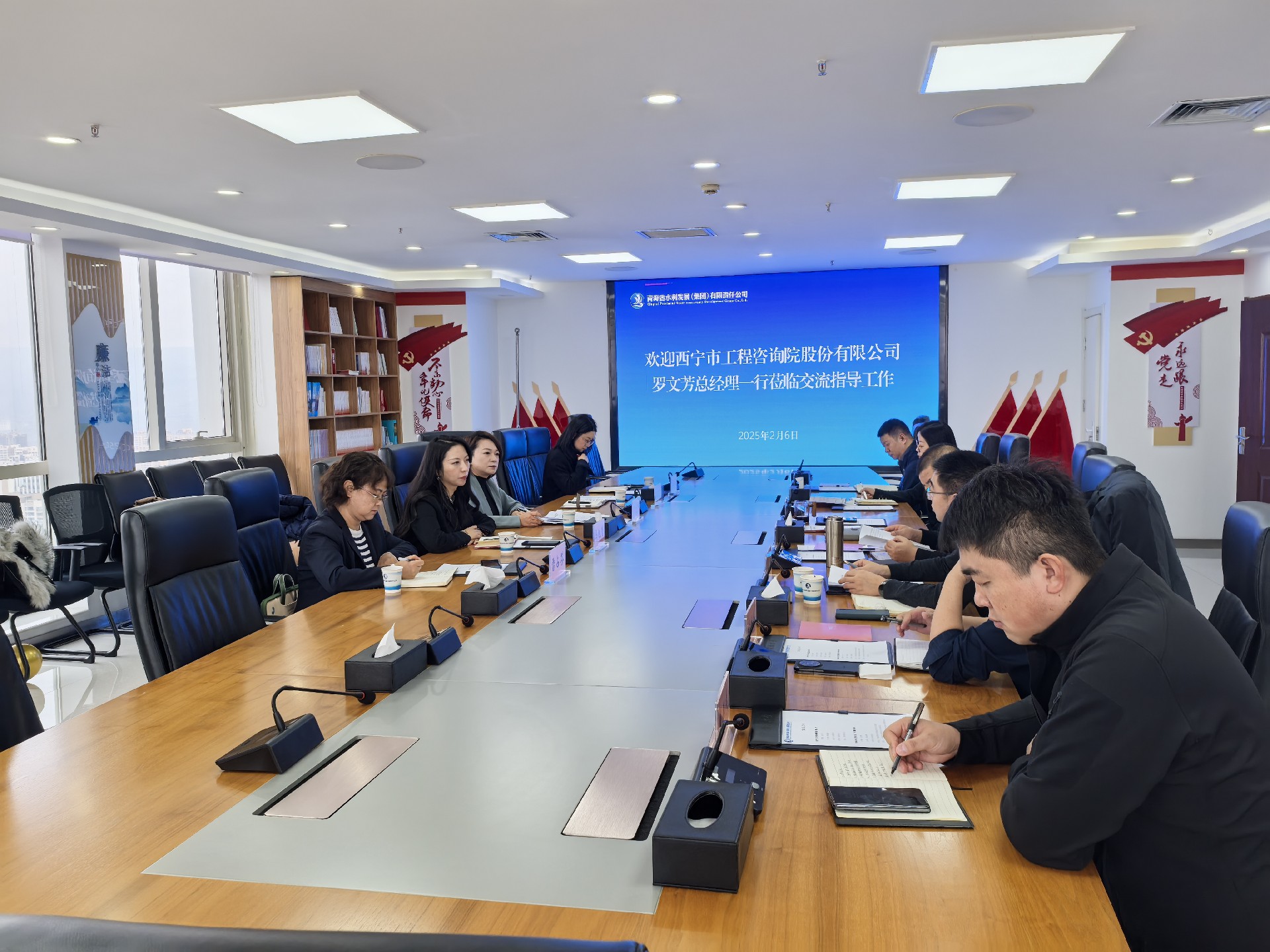 2025年2月6日,西寧市工程咨詢院股份有限公司總經(jīng)理羅文芳率隊(duì)到訪青海省水利發(fā)展(集團(tuán))有限責(zé)任公司(以下簡稱“水發(fā)集團(tuán)”),與水發(fā)集團(tuán)總經(jīng)理桑恒敏及相關(guān)負(fù)責(zé)人就雙方合作領(lǐng)域進(jìn)行了深入交流。工程咨詢院副總經(jīng)理馬旭瑩及咨詢部、造價部、項(xiàng)目管理部負(fù)責(zé)人,水發(fā)集團(tuán)副總經(jīng)理王曉秩及相關(guān)部門負(fù)責(zé)人共同參加了此次會議。